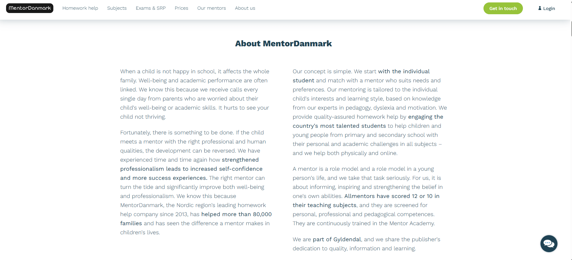 MentorDanmark is a major Danish tutoring company founded in 2013 by Nicklas Kany. It operates as a high-quality homework-help service for school students, offering one-on-one support in all subjects from elementary through gymnasium. MentorDanmark is part of the Gyldendal publishing group, giving it access to top educational materials. In fact, it has been described as “the country’s biggest tutoring company”. The platform provides both in-person and online tutoring. In each case, students undergo an initial needs assessment and are then matched with a certified top-performing mentor. The company focuses on building confidence and skills, not just quick answers. Overall, MentorDanmark is a well-established and trusted provider in Denmark, with thousands of satisfied families served and a long history of awards and growth.
