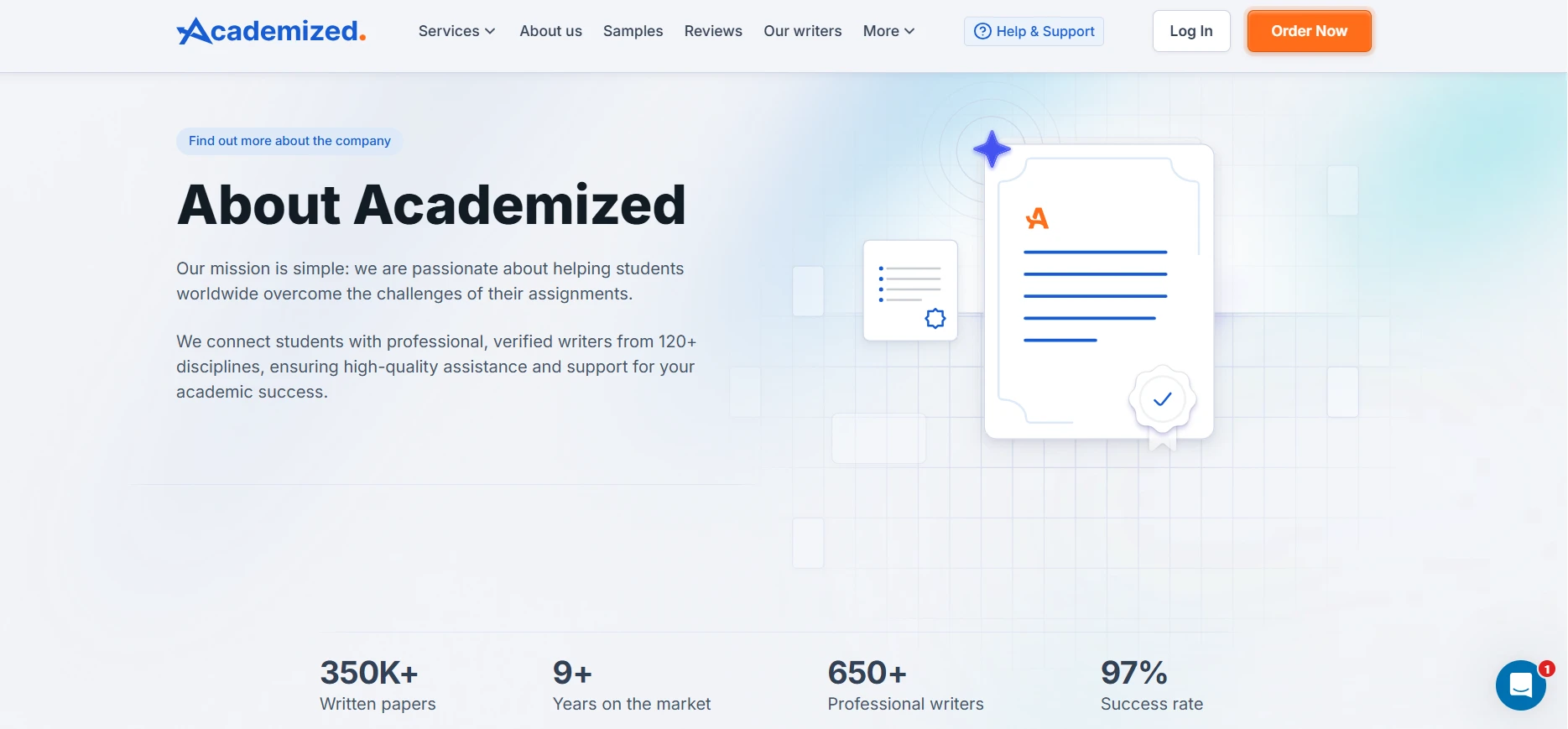 How long has Academized been in business? The company claims “9+ years on the market”, implying it started around 2013–2014. It has built a sizeable customer base in that time.