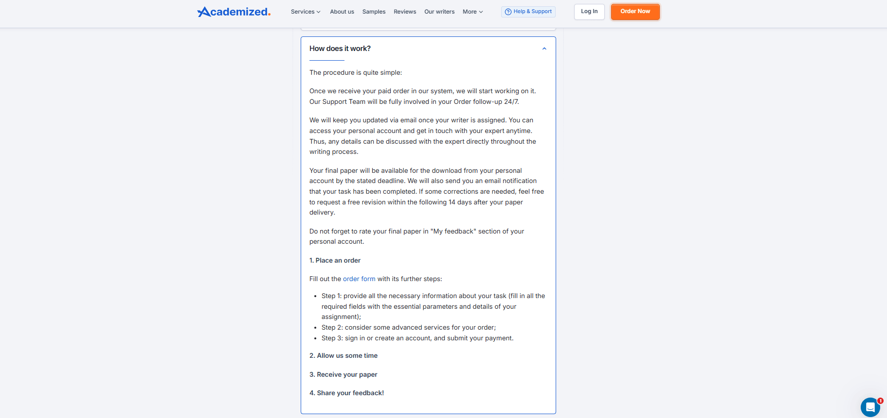 - No hidden fees: Academized displays “No Hidden Charges”, and many customers do receive the written work they ordered for the price quoted.