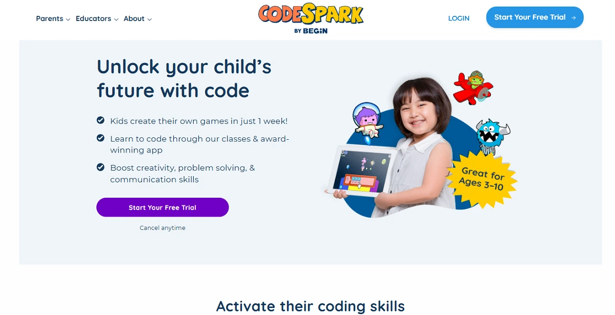 codeSpark Academy: A children’s coding app (ages 5–9) with gamified lessons. It boasts 30 million users worldwide.