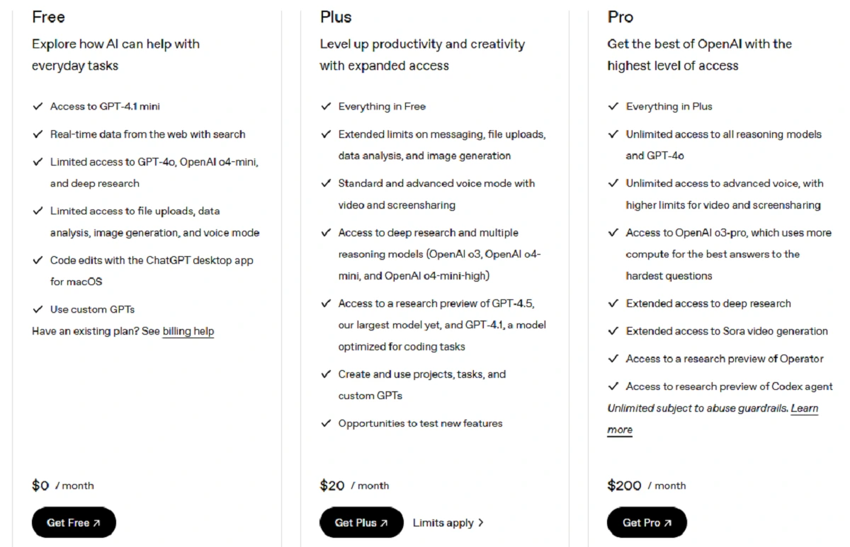 Here’s a visual breakdown of ChatGPT pricing tiers, including how billing works and what to watch for.