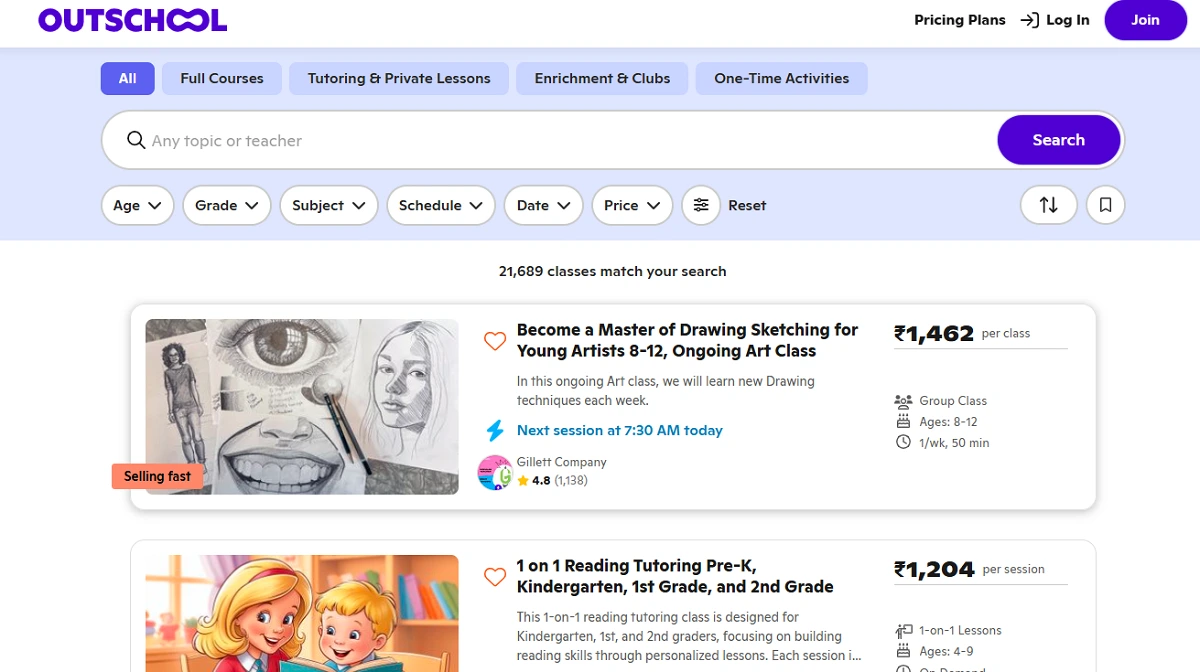 Outschool offers small-group and 1:1 classes online for kids (ages 3-18). Classes cover academics, arts, coding and more. You pay per class (often starting around $10 for a 1-hour group class). Outschool has thousands of teachers and flexible scheduling. Unlike Codeyoung, classes may have multiple students (for a lower cost) or be one-on-one by special arrangement. Outschool is easy to use (booking on their site) and classes are varied. It is usually cheaper per hour for group sessions. A downside is class quality varies by teacher. Codeyoung classes are always 1:1 live, which can be more expensive but more personalized. Overall, Outschool is a flexible, multi-teacher platform, whereas Codeyoung is a single-company platform with vetted mentors.