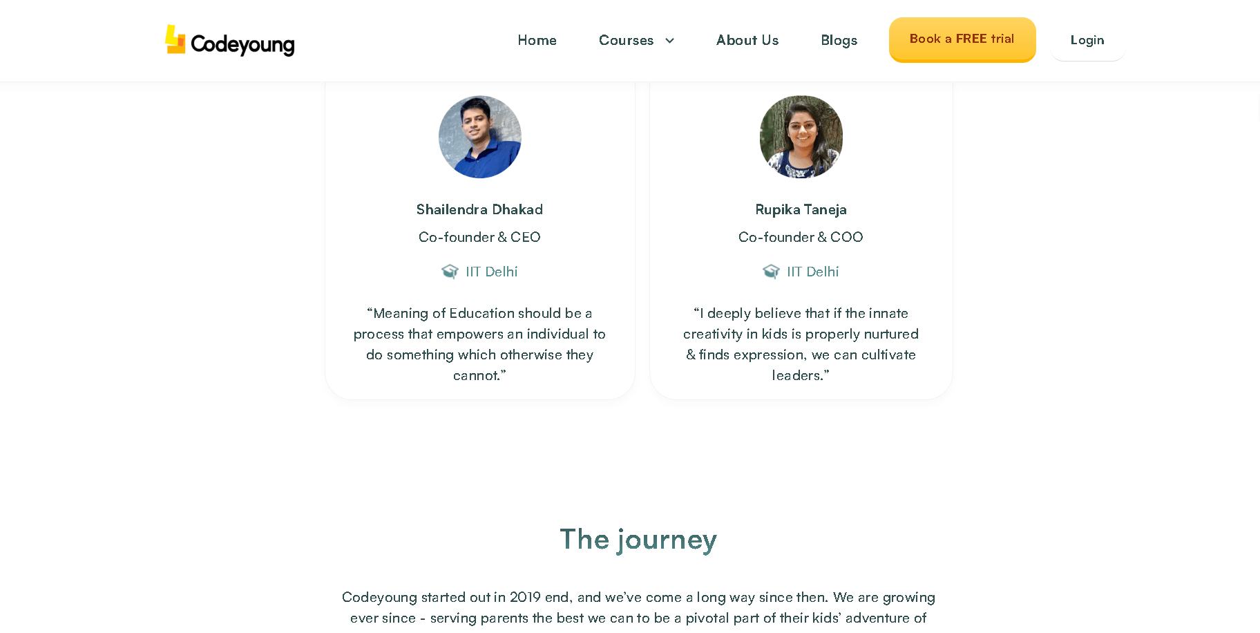 Codeyoung was founded in late 2019 by Shailendra Dhakad and Rupika Taneja. They met at a top engineering university and aimed to empower children through simplified learning. The mission is to help kids become innovators by making learning easy and fun. Codeyoung is based in India but serves students globally (especially in the US and Canada). It has enrolled over 20,000–30,000 students. The platform offers 1:1 live classes for school subjects. Its services cover coding (Scratch, Python, web/app development, AI, etc.), math, science, English and even test prep. Unique features include interactive coding curriculum, progress reports, and an AI tutor called Noah for extra practice.
