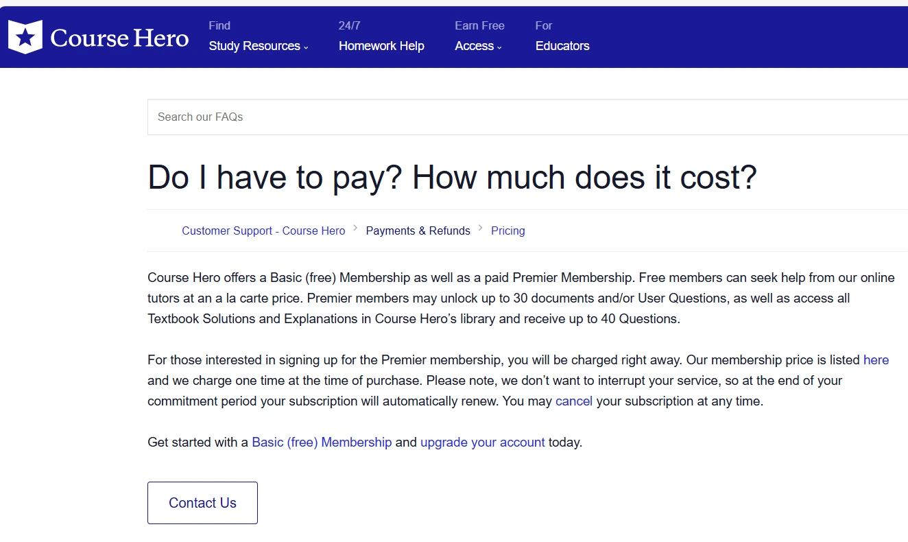 Course Hero Pricing