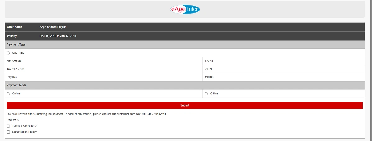 A: The site shows very low-cost items like a Rs.199 (~$3) self-study module, but the main live courses are pricier (exact rates require inquiry). Importantly, eAgeTutor offers a free demo lesson before you pay, so you can try one session at no cost.