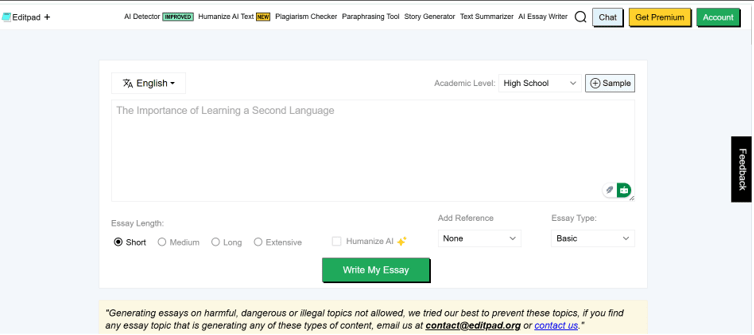 Editpad’s Essay Writer is a helpful tool for students who need quick and structured essay drafts. It’s easy to use and supports different academic levels and languages. The citation feature also saves time when working on research drafts.