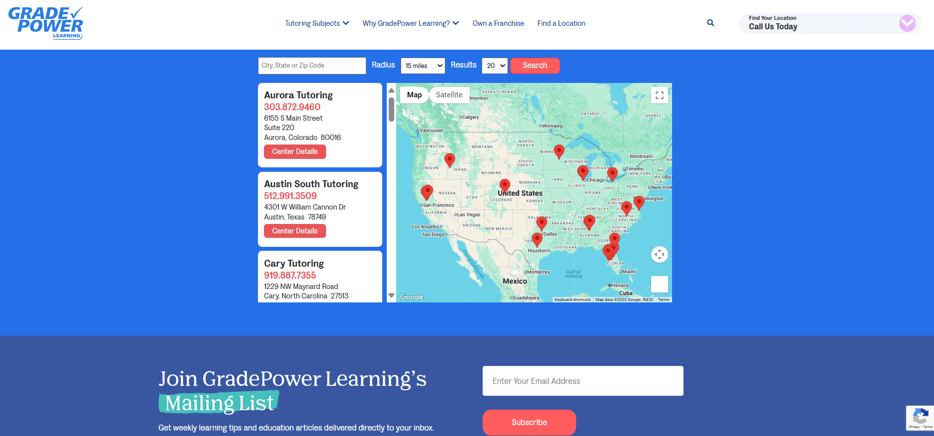 As of now, GradePower has about 150 centers in North America. Over 20 of these are in the United States. Most other centers are in Canada. The company is mostly regional; it does not have international branches outside the US/Canada.