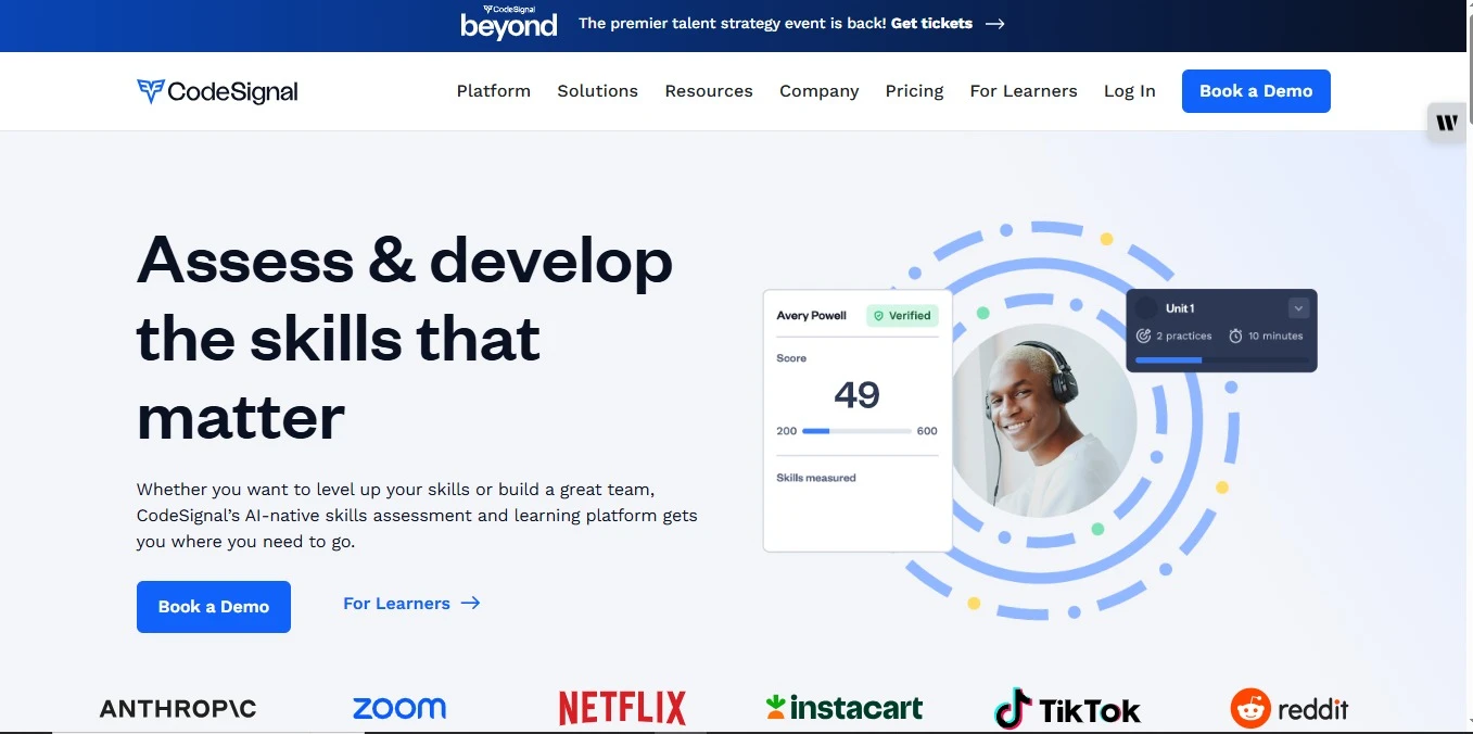 • Pros: CodeSignal is another platform for coding skills and assessments. It provides coding tests and interview exercises used by tech hiring. The site has some game-like challenges and a user-friendly interface. For companies and bootcamps, it offers streamlined assessment workflows.