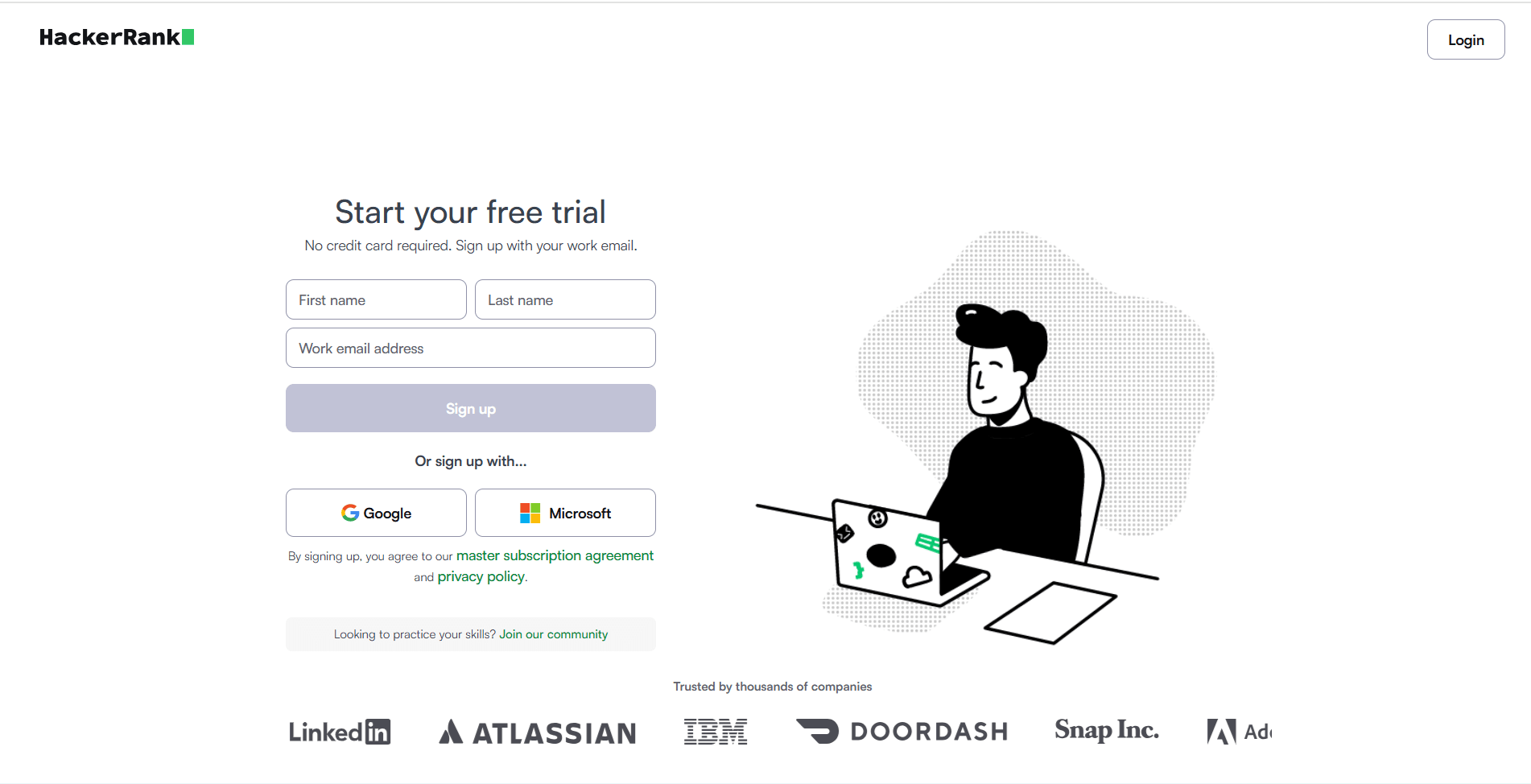 Yes. HackerRank offers a free trial for its corporate hiring products. You can “start your free trial” without a credit card. (For individual practice, a trial isn’t needed because basic features are already free.)