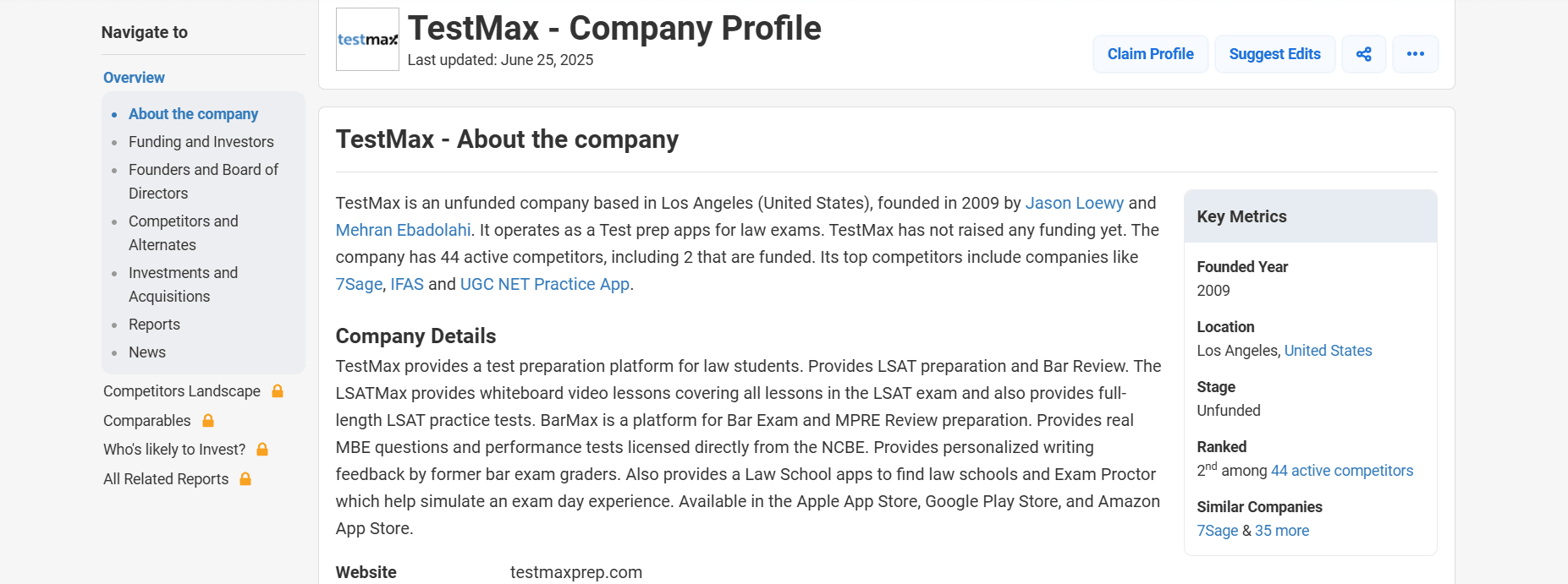Founding year and background: TestMax (the company behind LSATMax & BarMax) was founded around 2009–2011. Two Harvard Law graduates, Jason Loewy and Mehran Ebadolahi, launched LSATMax in 2009 and later BarMax in 2010. They saw a need for affordable, technology-driven exam prep. The company is headquartered in Venice (Los Angeles), California.