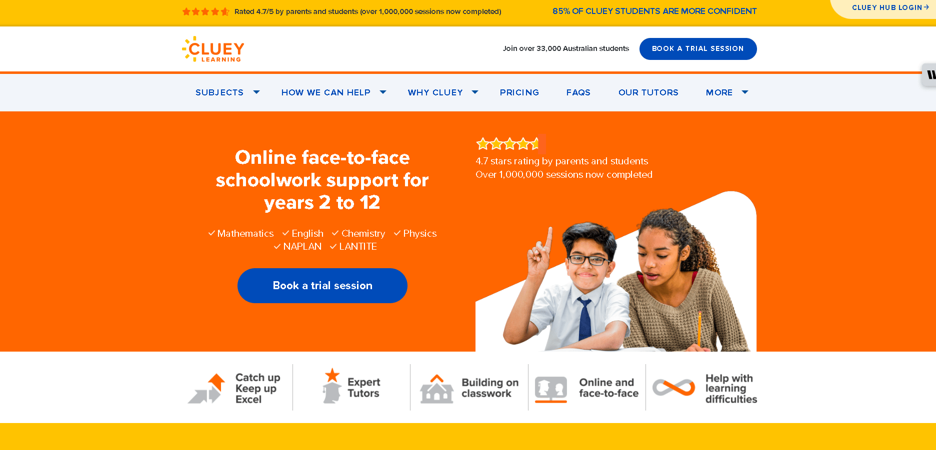 - Cluey Learning: An Australian online tutoring company offering personalized courses for school students. Sessions are all online, and you can pay per lesson or buy packages (no contracts). It does not offer a free initial trial. Cluey emphasizes tech-enabled learning and multiple subjects, but KIS has the edge in one-on-one live help and trial sessions.
