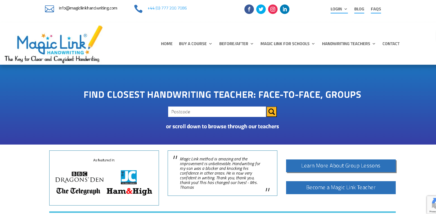 Students or parents first create an account on the Magic Link website. For the self-study course, users purchase the program online by adding the desired course modules to the cart and checking out. After payment, video lessons and printable worksheets are emailed instantly. For live lessons, the student uses the “Find Handwriting Teachers” directory to locate a nearby Magic Link instructor. Each teacher’s profile has a “Contact/Enrol” button. Parents then message the teacher directly to schedule sessions.