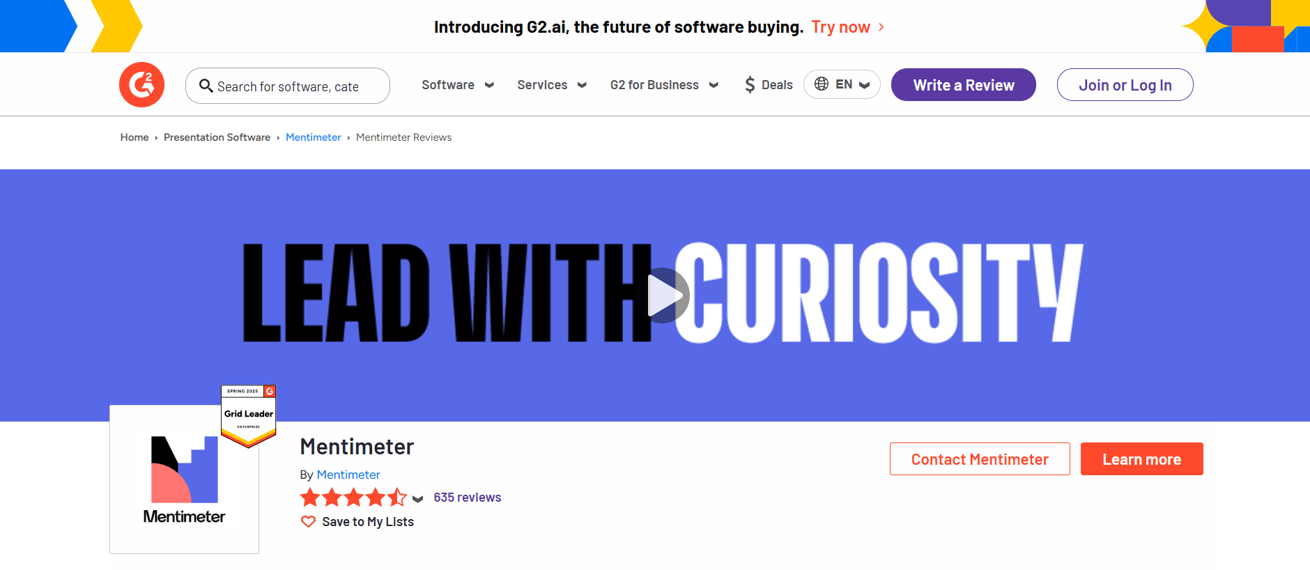 - Capterra: Mentimeter has 99 reviews at 4.4/5. Many users say it “facilitates audience participation and engagement”. They like its variety of question types and live results. On the negative side, several Capterra reviewers mention the free version is restrictive and paid plans are relatively expensive or confusing.