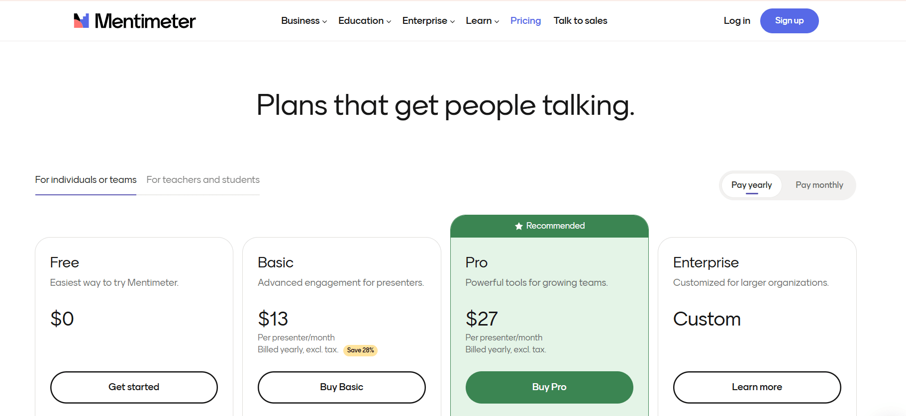 Mentimeter Pricing