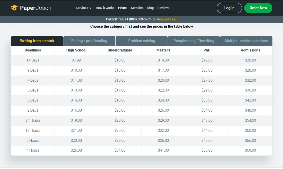 PaperCoach charges are mostly transparent, with few hidden fees. There is no registration or subscription fee – you pay per order. Mandatory fees include only the base writing cost. Optional add-ons include a $9.99 plagiarism report and a 10% surcharge for progressive delivery. These extras are optional, so no surprise costs unless you opt in. Cancellation is not discussed explicitly on their site. In summary, aside from clearly advertised extras, students report no unexpected hidden charges.