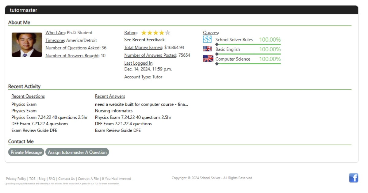 Tutors sign up and build a profile listing their subjects and skills. To activate an account, School Solver requires passing two short quizzes (a rules quiz and a basic English quiz) with high scores. Only after passing these quizzes can you answer questions. Tutors browse the list of open questions (or use the “Tutor Mode” to filter unclaimed ones). They write detailed, step-by-step answers and submit them. When a student buys your answer, you earn the set price minus the 20% platform commission. Earnings accumulate in your account, and you can withdraw them via PayPal once you hit the \$25 minimum. The site pays out every week or so, though some tutors have reported 2–3 week delays. As long as you follow the rules (no plagiarism, proper formatting) your account will stay in good standing.