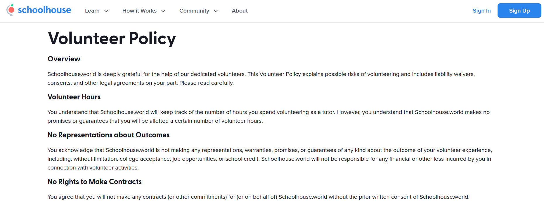 Q: How do I make money tutoring on Schoolhouse? Schoolhouse tutors are volunteers. There is no pay or payment — sessions are free for learners. Instead of money, tutors gain experience and volunteer hours. Many tutors cite the joy of helping others and the credential (Schoolhouse certificate) as benefits.