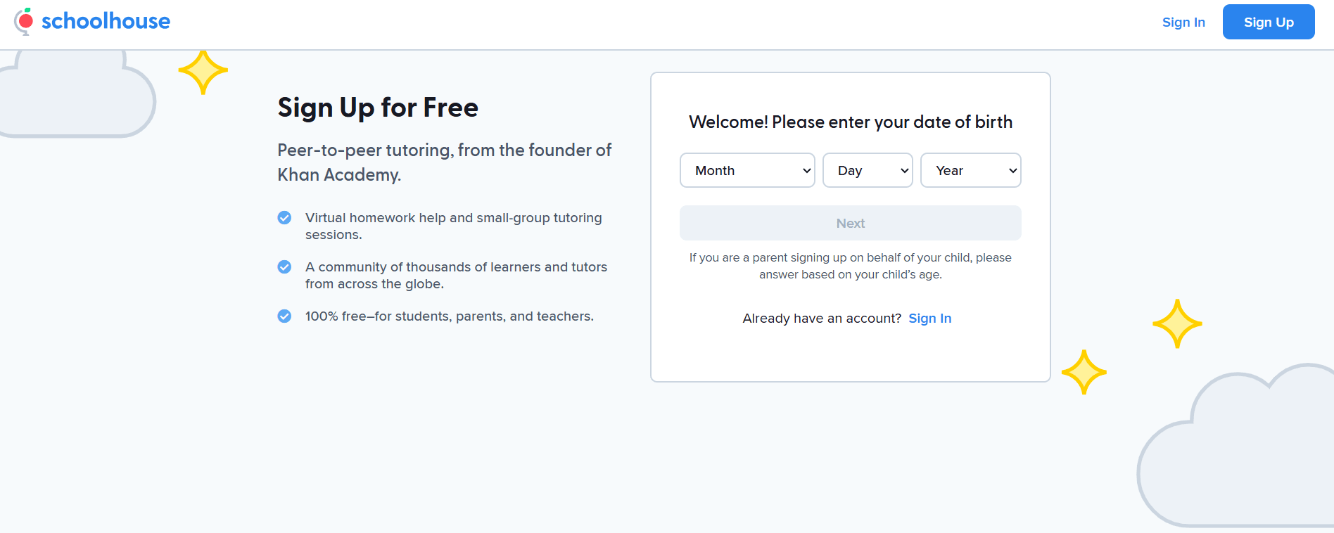 There are no hidden fees on Schoolhouse. All tutoring services are offered at zero cost, so students do not pay subscription or extra charges. Since it’s free, there are no surprise costs for materials or time.