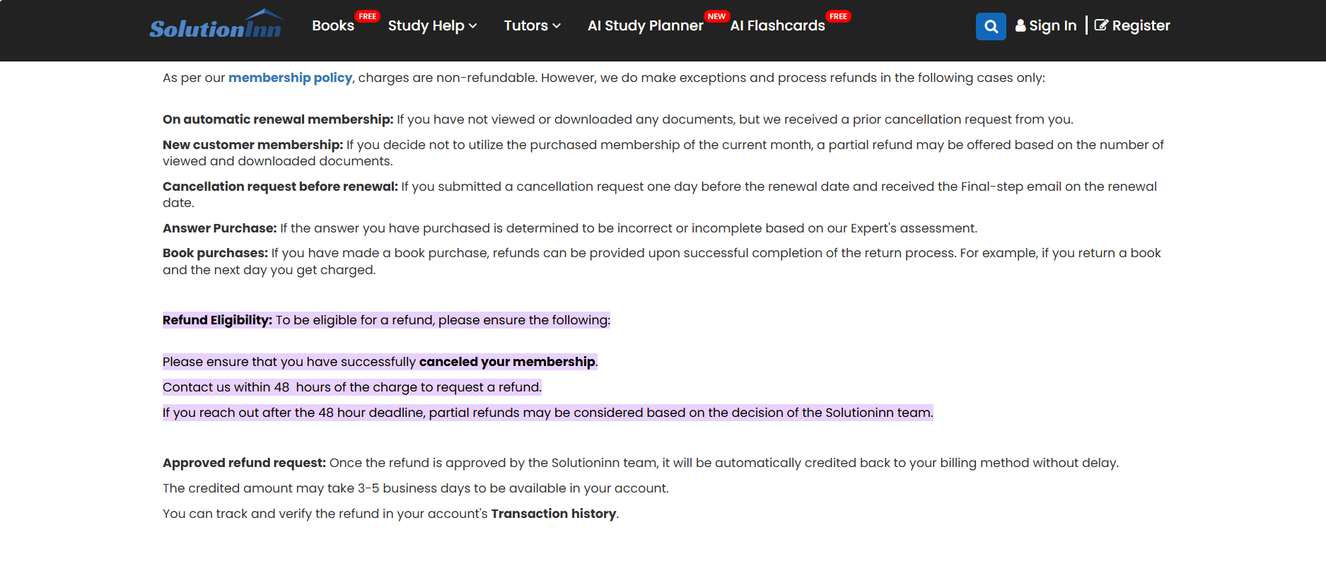 - What if I don’t like the answer? You can request a refund or revision if a solution is unsatisfactory. SolutionInn’s policy says to email support and they will refund within 3–5 days. (Many users advise insisting on an external refund back to your card, not just site credit.)