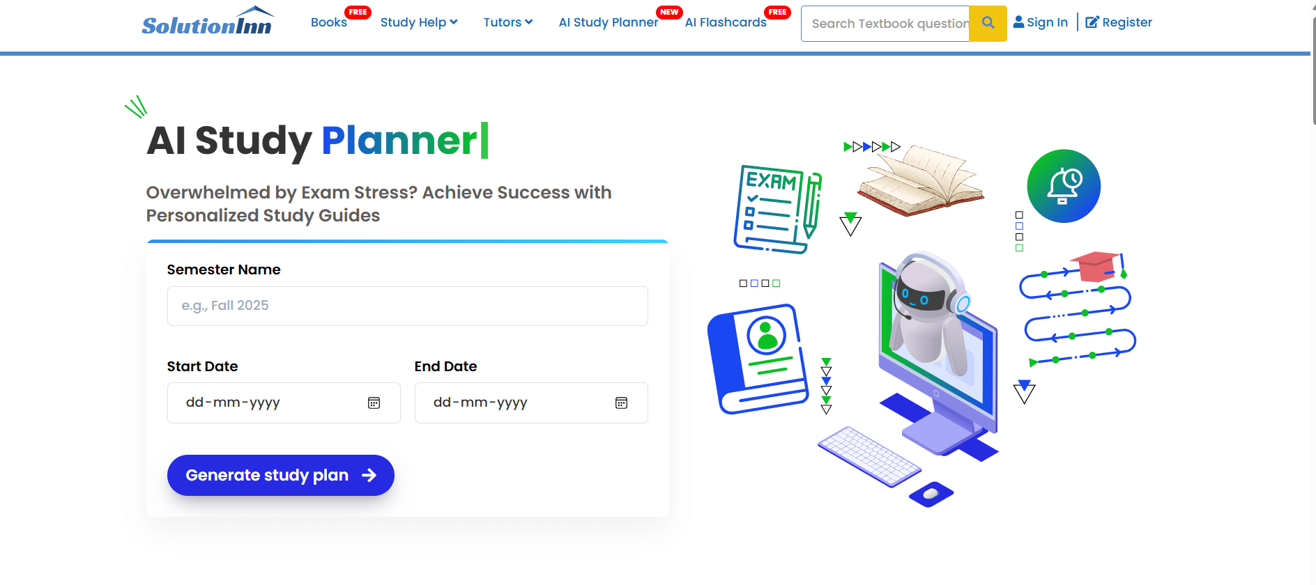 - Flashcards and Study Tools: The site provides an AI-driven flashcard creator for review and other study planners. Its homepage mentions “flashcards” and an AI study help system.