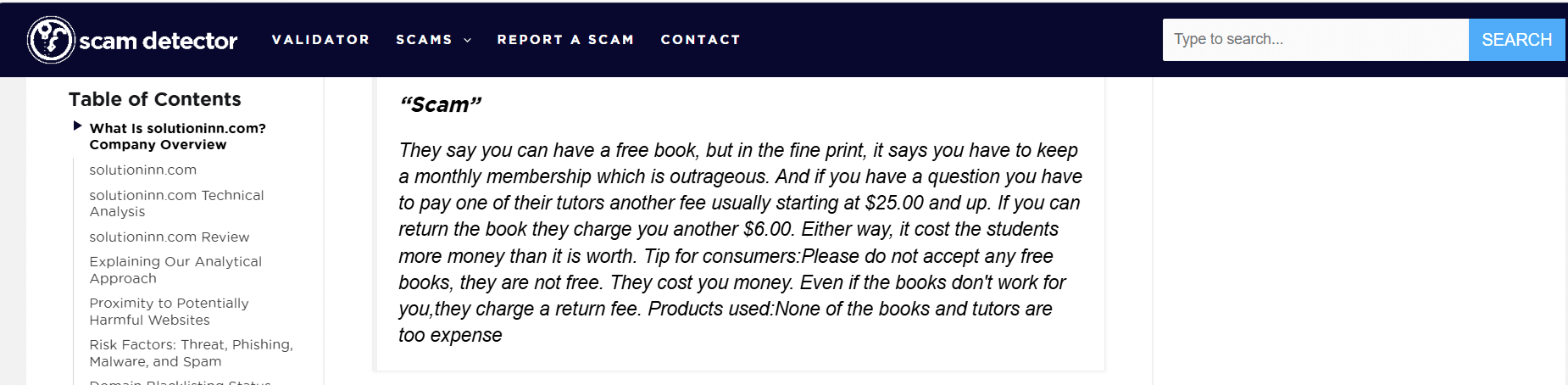 Many student reviewers have mixed feelings about the pricing. The low monthly fee is seen as attractive, but customers warn of additional charges. Some say that while the $9.99 membership seems cheap, actual tutoring help can cost extra. One Sitejabber review (quoted on ScamDetector) points out that hiring a tutor on a question can add “another fee usually starting at $25.00 and up”. Another comment complains that “if you have a question you have to pay one of their tutors another fee… and up”. Likewise, several users on PissedConsumer mention hidden tutoring fees. For example, one reviewer says “they charge you extra for any questions” beyond the membership. Students also note fees related to textbooks: if you order a “free” textbook and later return it, SolutionInn reportedly charges a $6.00 shipping or restocking fee. In summary, while the advertised price is clear, some students feel the total cost can be higher due to these add-on fees reported by reviewers.