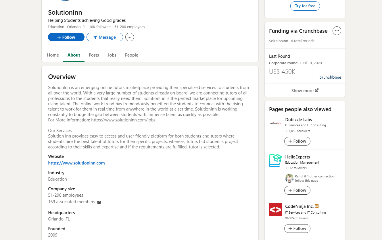 SolutionInn, LLC is a Florida-based private company founded in 2009. It was established by two brothers (with Fawad Saleem serving as CEO) to connect students with freelance tutors online. The co-founders had backgrounds in freelancing and wanted a structured tutoring marketplace. Today, SolutionInn’s headquarters is in Orlando, FL, and it also has a UK office in London. Fawad Saleem is the public CEO, often mentioned in press releases. The company remains privately held and has no major outside funding announced.
