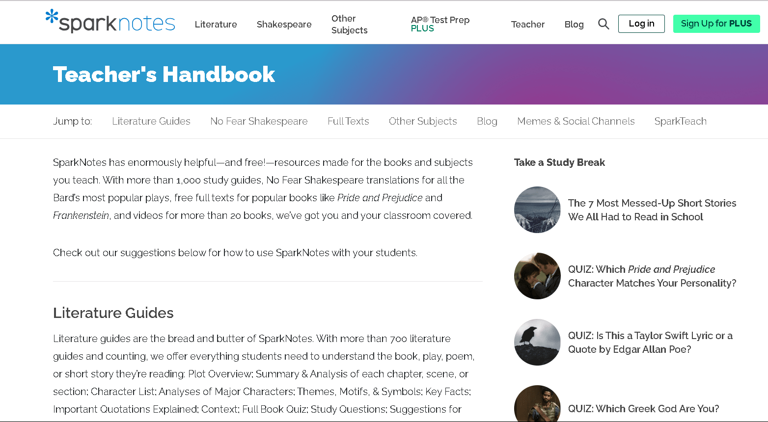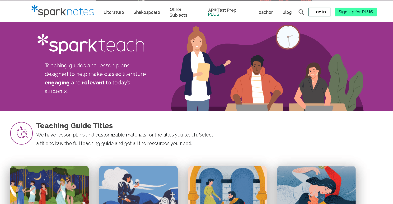– Teacher Resources: As mentioned, SparkTeach and a Teacher’s Handbook section exist for educators to get lesson plans and teaching guides for literature.