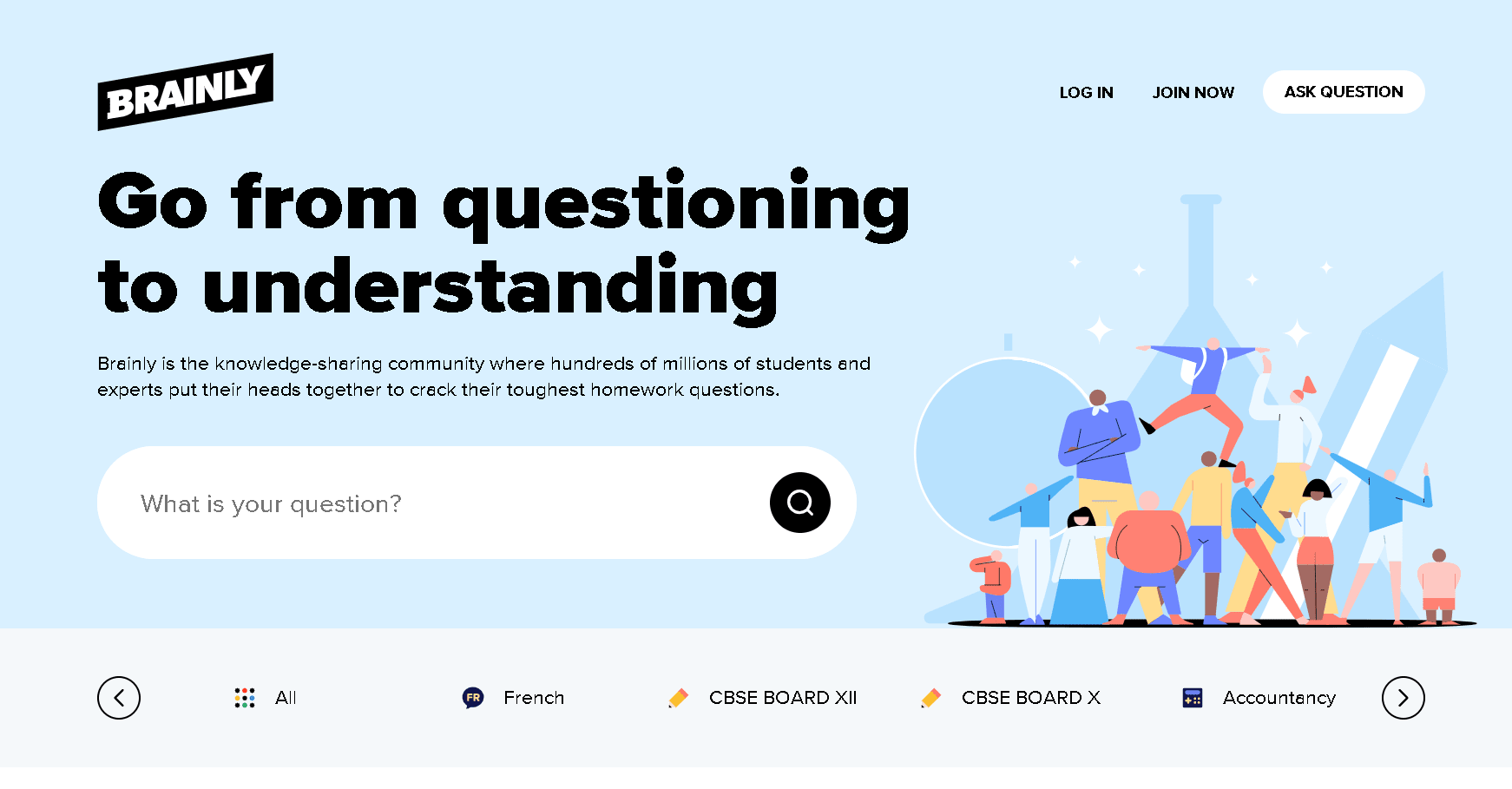 Signup process: Students download the app and register (email or Google/Facebook/Apple account). Once logged in, they can immediately ask questions.