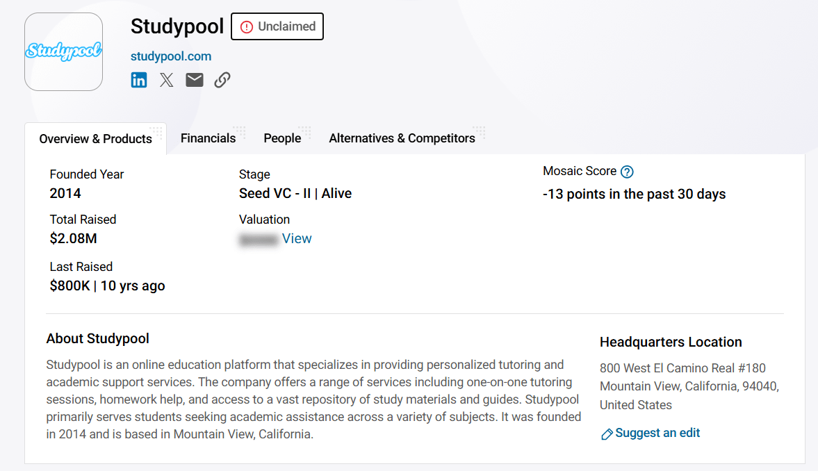 Studypool is based in Bellevue, Washington and was founded around 2014. Richard Werbe, a college student at the time, launched it as an on-demand tutoring platform. Under his leadership it has expanded to serve millions of students. The company’s mission is to keep learning moving by solving difficult problems on demand. Studypool emphasizes quality: all tutors are required to have verified degrees or credentials. It has offices in the US and a global team (the LinkedIn page lists ~673 employees). The platform offers services like Q&A homework help, notebank of study documents, textbook solutions, video tutoring, in-person tutoring, and scholarships info.
