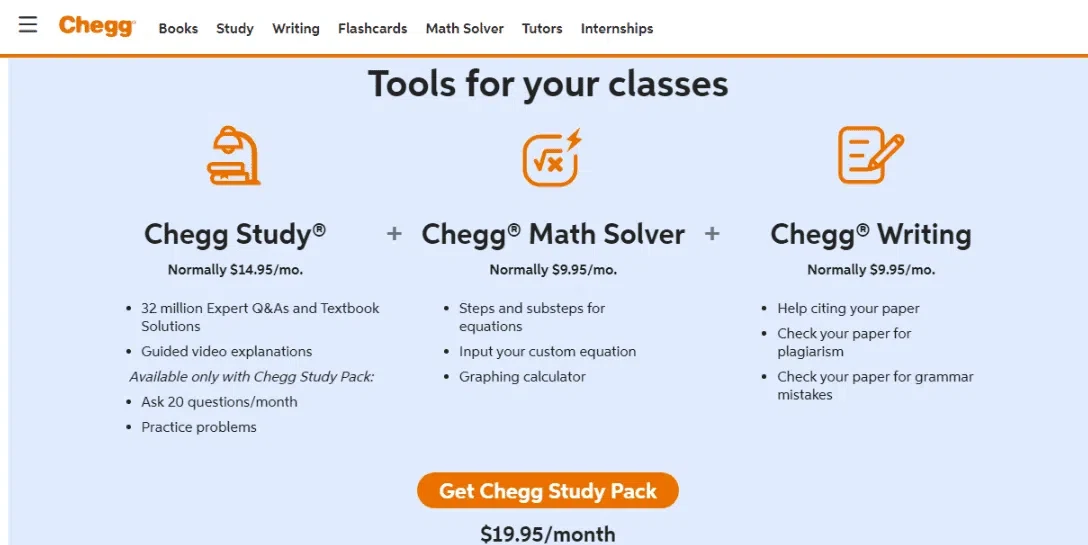 - Chegg Study: A very popular homework help site. Pros: huge library of solved problems, textbook solutions, expert Q&A. Cons: expensive (about $15.99/month), and it doesn’t give refunds for cancellations. Chegg focuses on expert answers and flashcards, whereas StudyX relies on AI plus community answers. Many students compare the two due to overlap in services.