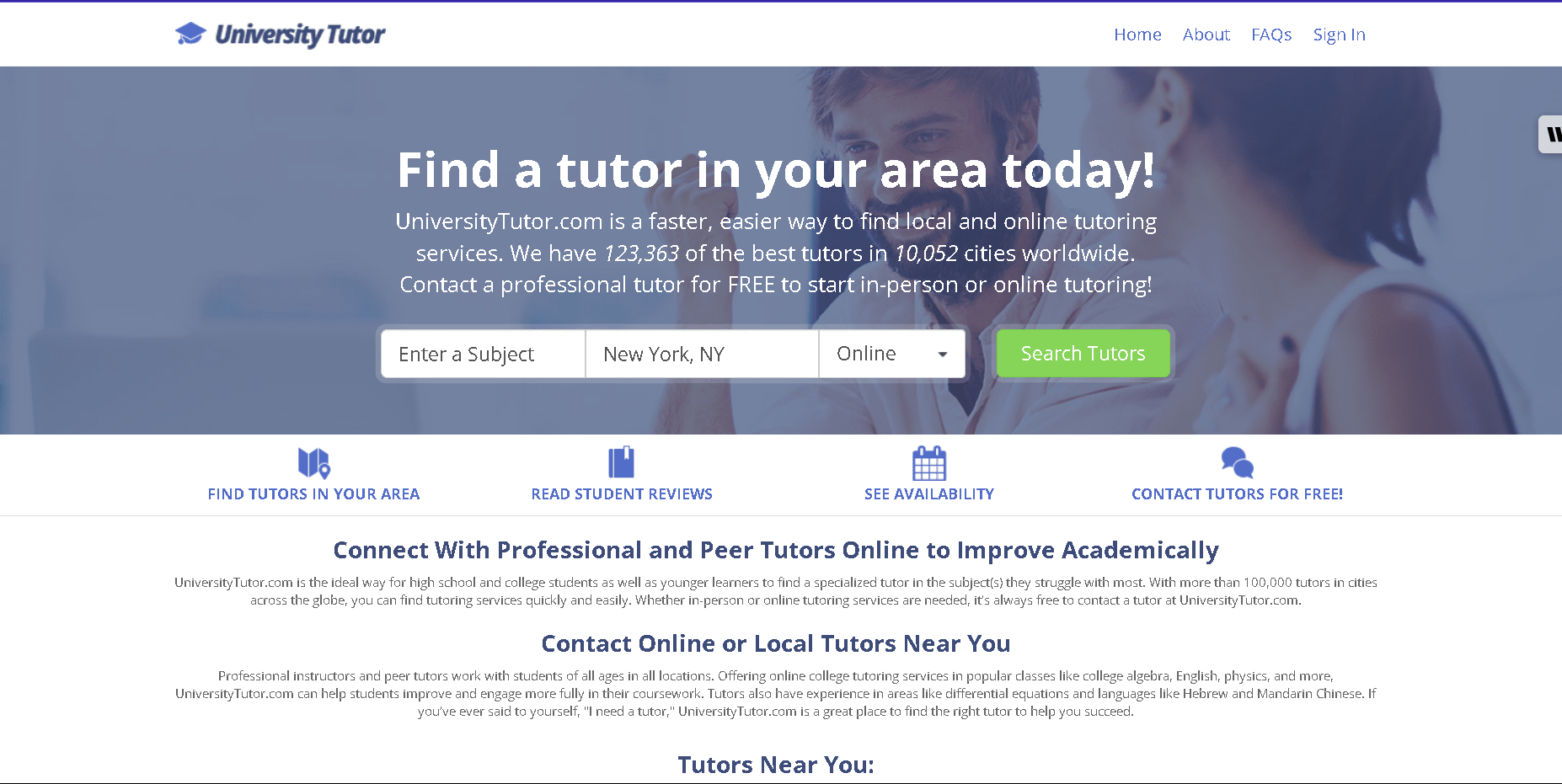 Pros: UniversityTutor is a tutor marketplace aimed at college/university students. It lists tutors for academic subjects, test prep, music, languages, etc. Unlike Wyzant, it doesn’t take a commission from tutors, so tutors set rates directly. It’s useful for college-level courses and tends to have competitive rates. It’s 100% online, so accessible anywhere in the US.
