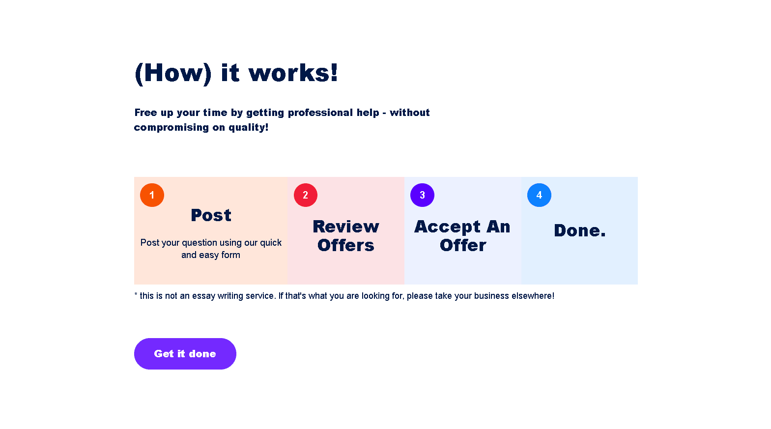 In practice, simpler questions might get bids in the $5–$20 range, while more complex or urgent assignments can cost more (sometimes $50 or higher, depending on length and deadline). Because students can choose their price and tutor, the “range” is quite flexible. You might find someone to solve a single math problem for $5, or you might pay $100+ for a lengthy research project. Essentially, the cost depends on the scope of your request and the offers you receive.
