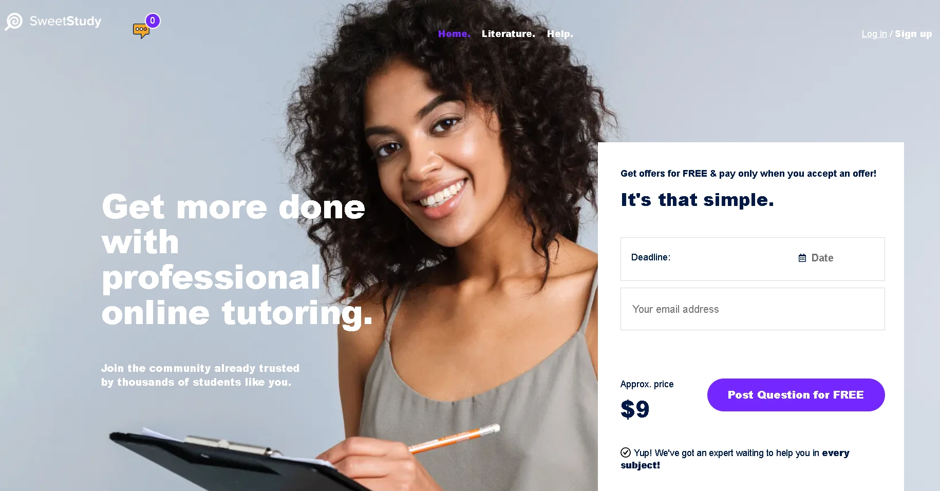 Does SweetStudy offer a free trial? No, not in the traditional sense. There isn’t a period during which you can get unlimited free tutoring or a full service trial without paying. However, SweetStudy’s model does allow you to start the process without any upfront payment. You can sign up for free and post a question for free, get offers from tutors, and even interact with tutors about your needs – all before paying. You only pay once you choose a tutor and agree on a price. In that way, SweetStudy lets you “try” the system by seeing what help is available for your question, at no cost. This isn’t a free tutoring session, but it ensures you don’t have to put money down until you’re confident in a tutor’s ability and price.