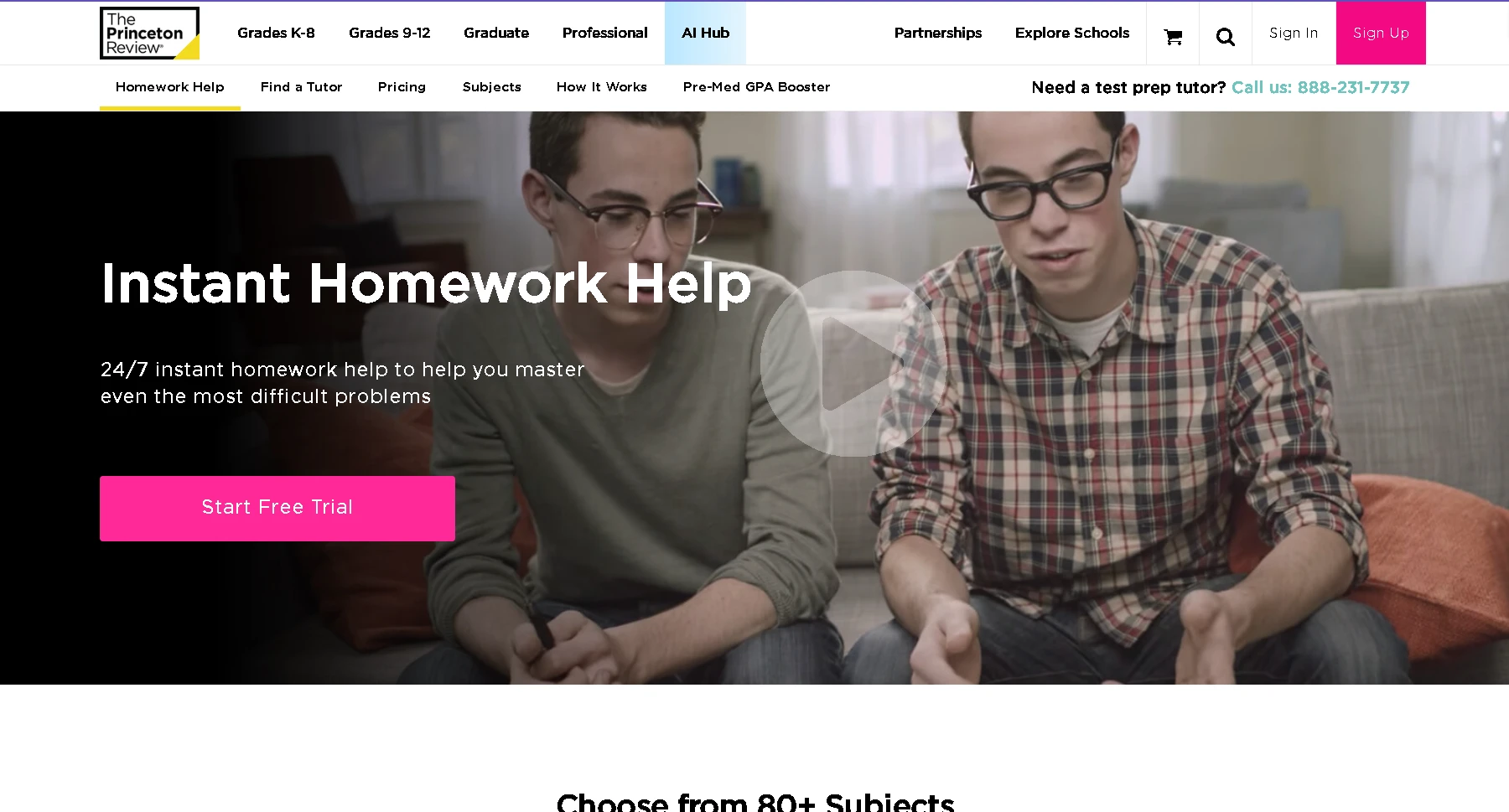 Tutoring Options: In addition to test prep classes, The Princeton Review offers private tutoring in many subjects. Their home tutoring service connects students to subject-matter experts on demand. As of 2024, TPR reports having over 3,000 tutors available online. These tutors cover more than 80 subjects, from basic math and science to advanced subjects like calculus, physics, chemistry, and computer science. The tutoring is offered 24/7: students can log in any time to get help with homework or studying. Two main portals exist for this: an “Instant Homework Help” section for quick questions and a “LiveOnline Academic Tutoring” hub for scheduled sessions. For example, a student struggling with a physics problem can start an instant chat with a physics tutor, or schedule a one-on-one tutoring session ahead of time.