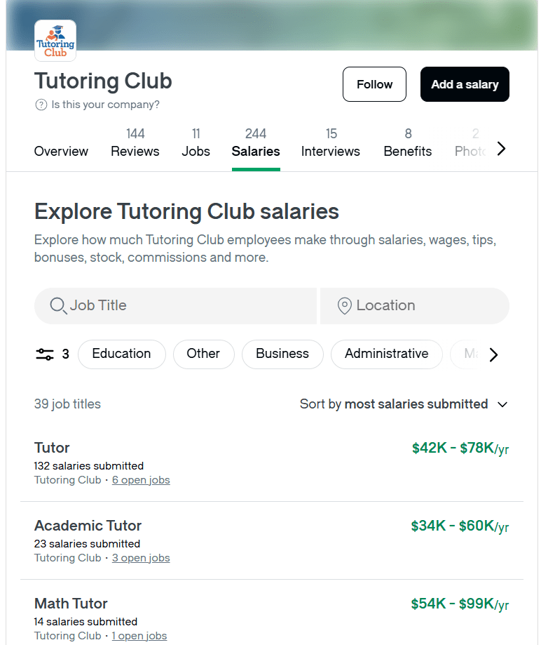 Earnings: Tutoring Club pays by the hour. According to Indeed, roles at the Club range roughly $13–$23/hr. In practice, most tutors report $15–25 per hour depending on subject and experience. There’s no multi-level pricing: the center sets rates for clients and pays tutors a set hourly wage.