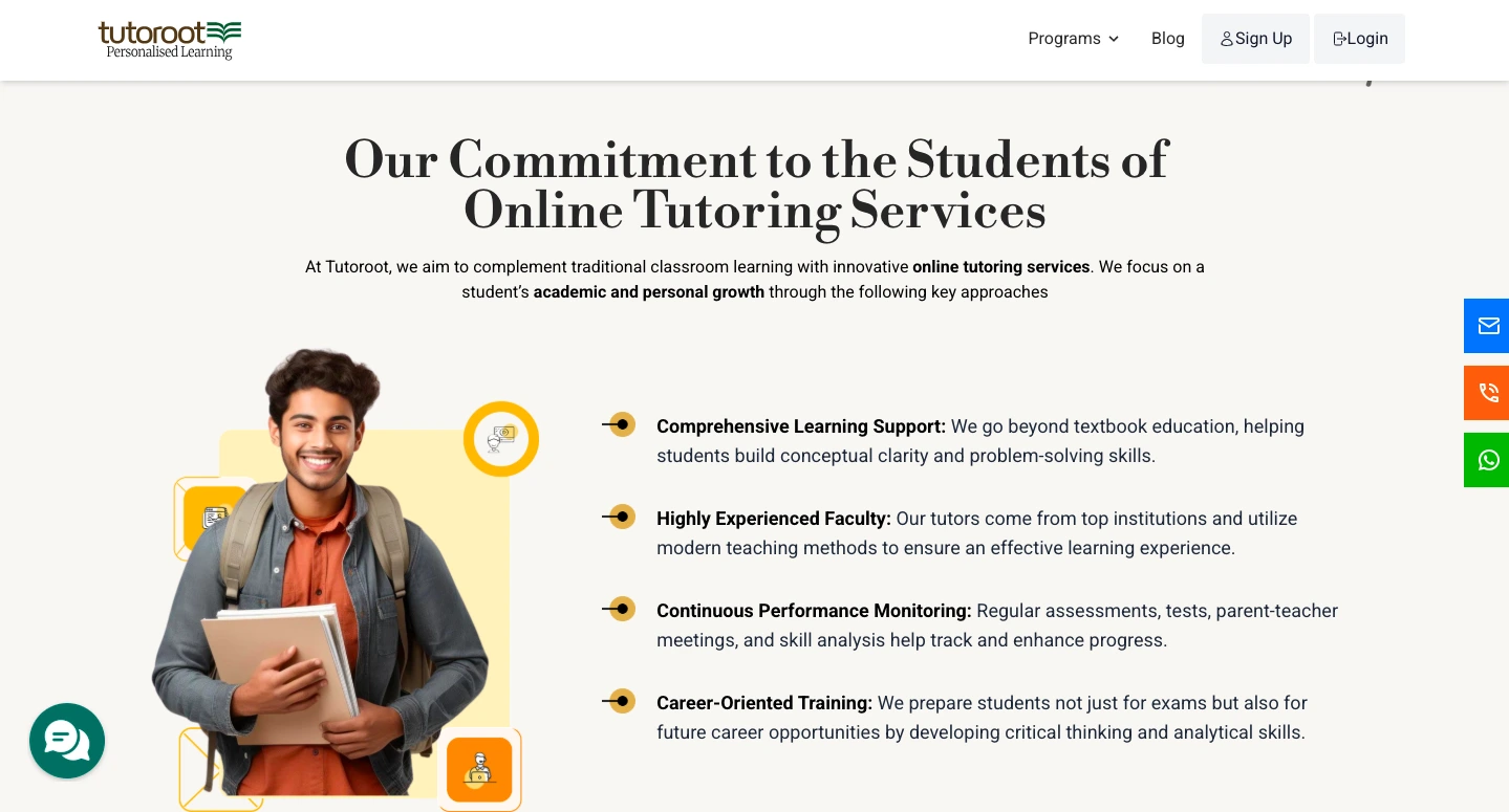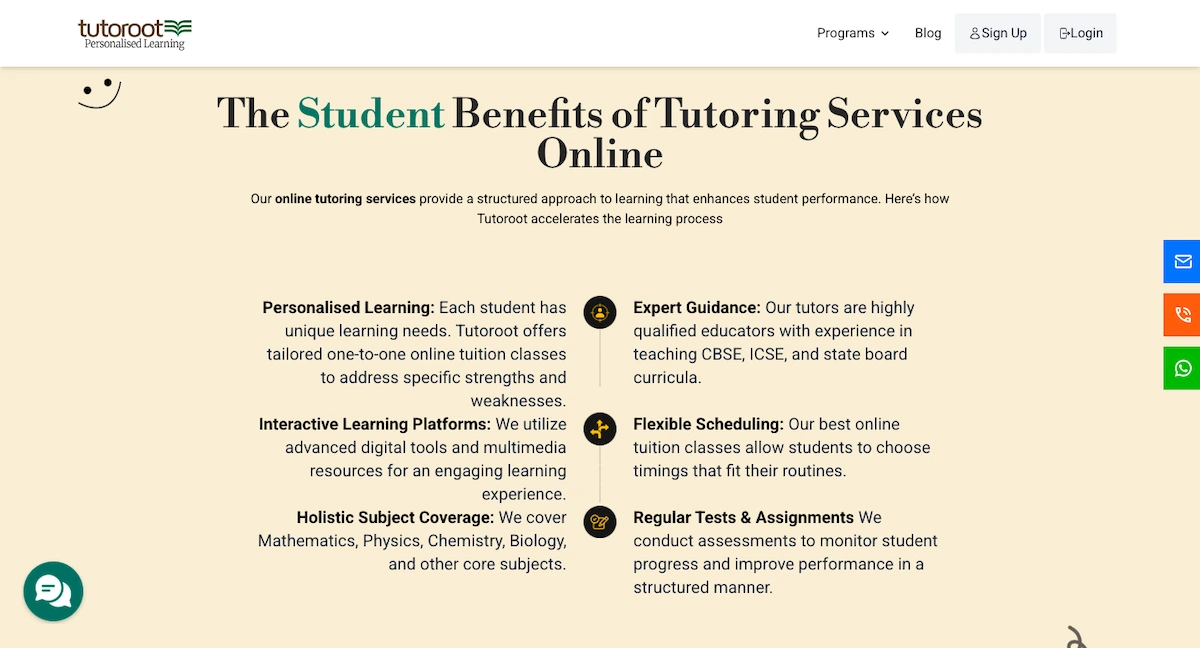 - Regular Monitoring: Tutoroot includes frequent assessments and parent-teacher meetings. The site emphasizes continuous monitoring of progress, though we found no independent confirmation from user reviews.