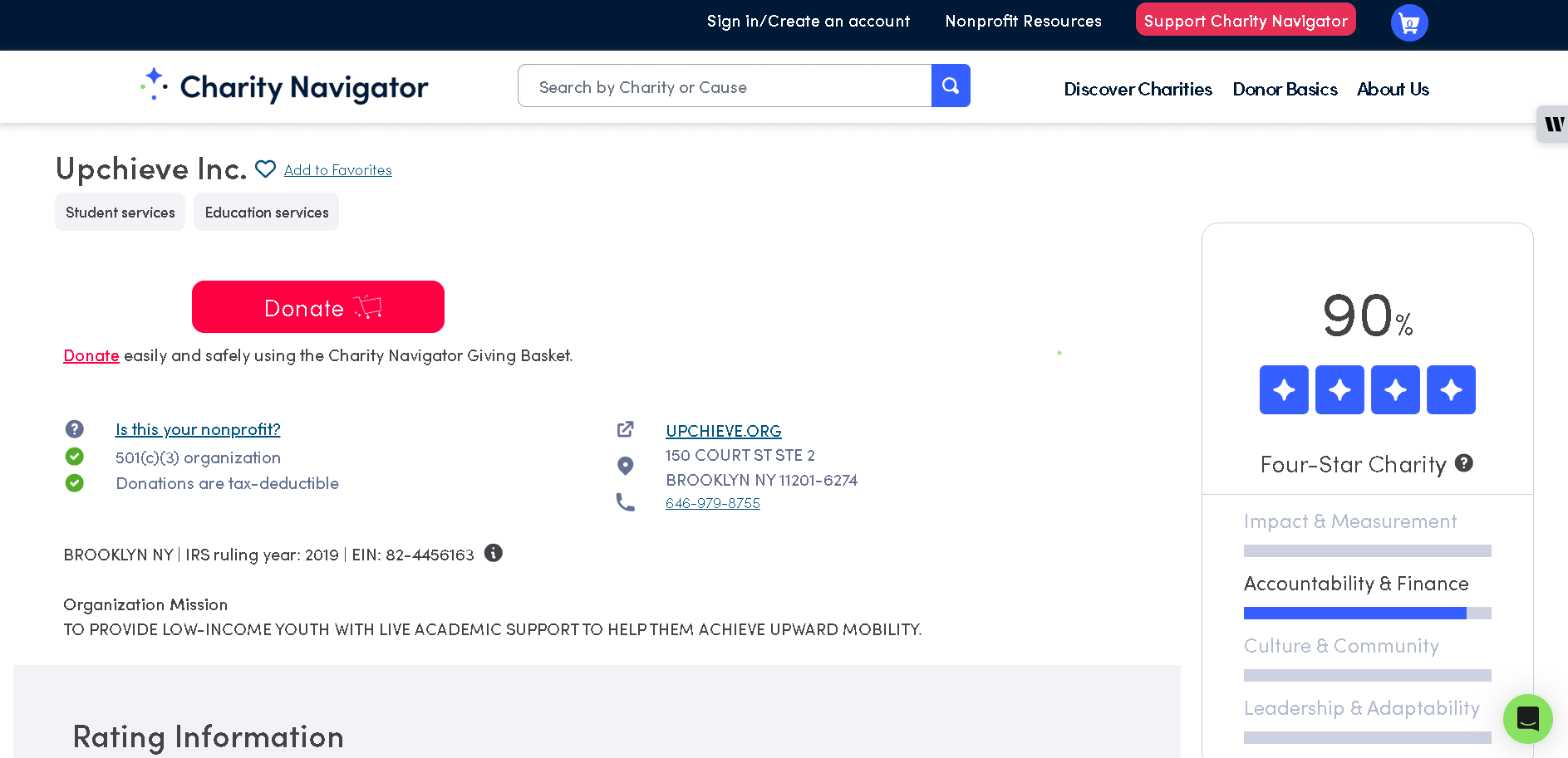 Yes. Upchieve is a registered nonprofit with a 90% (four-star) rating from Charity Navigator. Media outlets (Forbes, Time) have featured it. We found no reports of scams or hidden fees. Overall, Upchieve appears to be a legitimate, well-reviewed service.