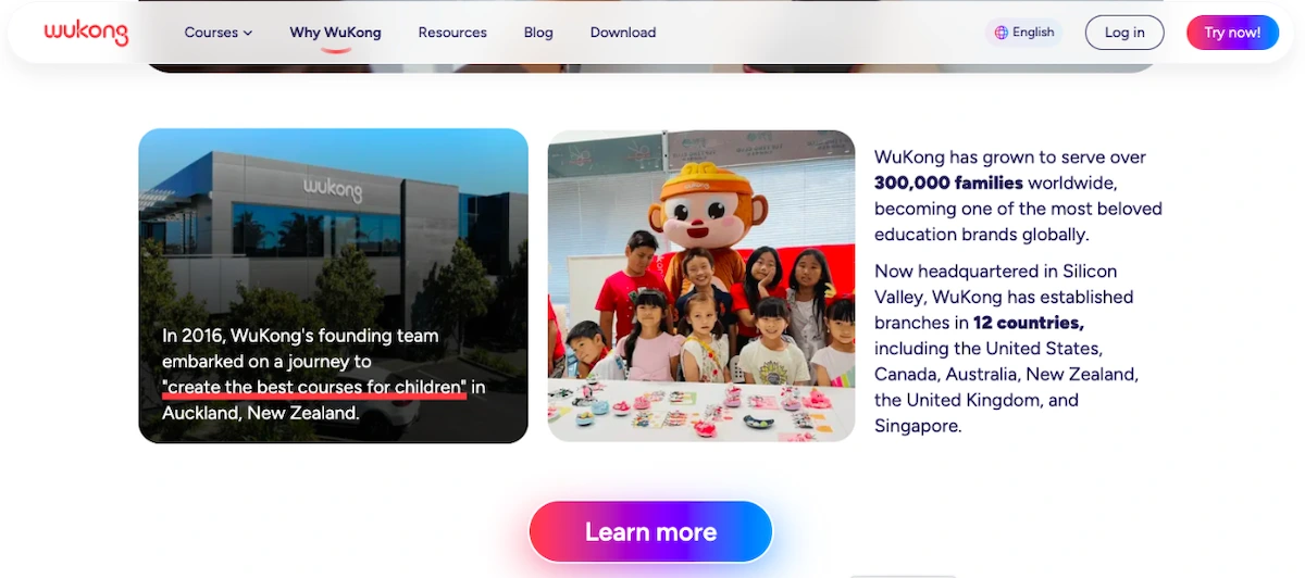 WuKong Education was founded in 2016 (in Auckland, New Zealand). It is led by founder/CEO Vicky Wang. The company’s mission is to offer “fun education” built on solid knowledge. Headquartered in Silicon Valley, WuKong now offers Chinese, math and English programs for children worldwide. It claims to serve over 300,000 families in 118 countries and has received high accreditation scores (Cognia) and many international awards.